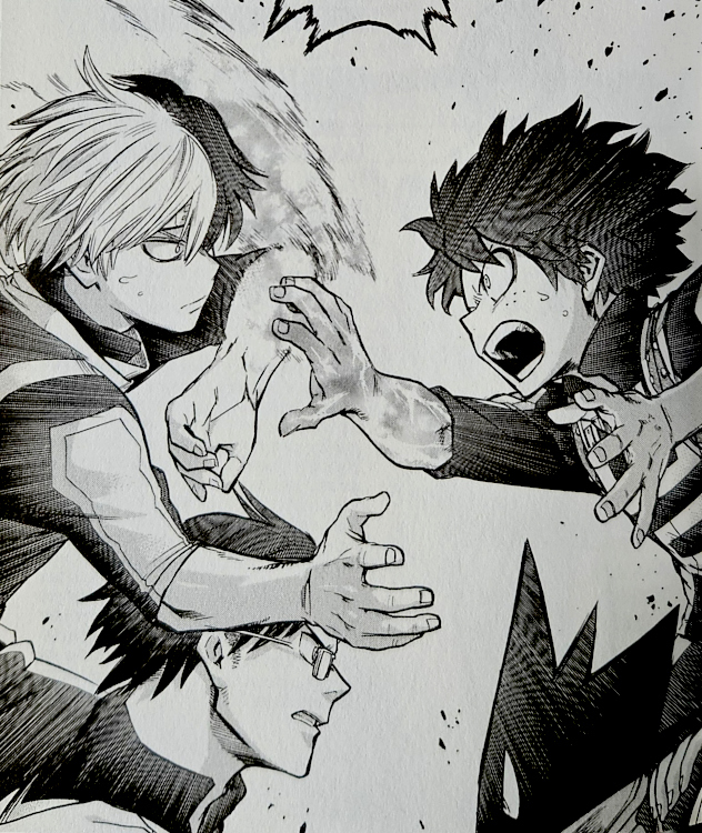Shoto, quant à lui, est bien décidé à arriver premier en battant Deku. Cette victoire lui tient à cœur et l’on découvre pourquoi en même temps qu’il nous révèle son passé et notamment ses relations tendues avec son père.
